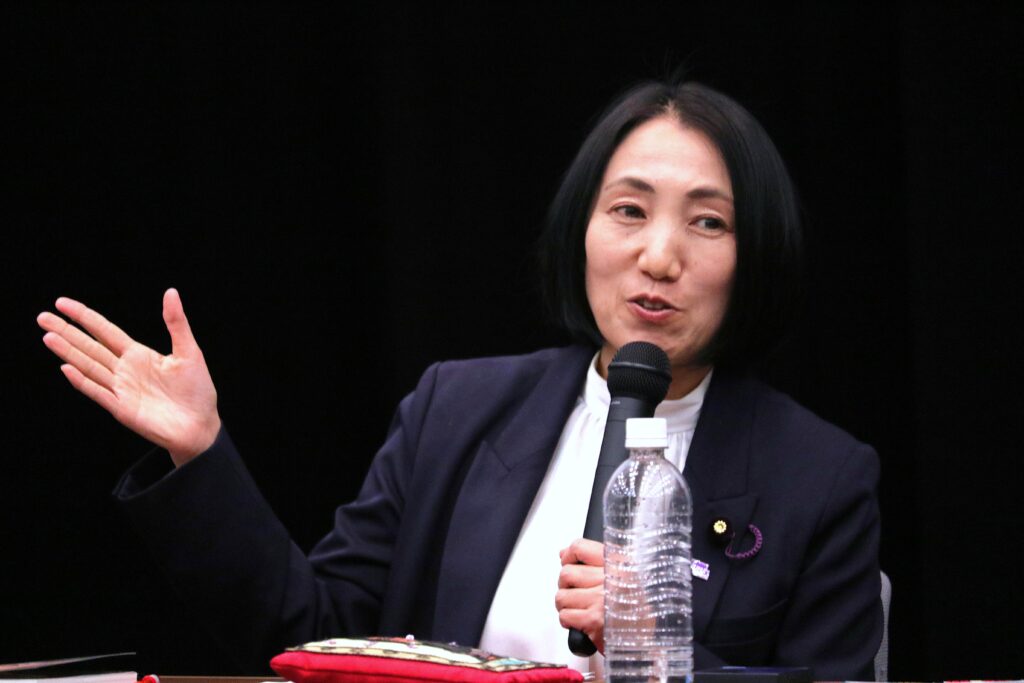 大椿ゆうこは、「人道調査室の予算は寺社等にあるご遺骨の返還のためにしか使えないという主張は、自分たちの仕事の範囲を限定し市民の要請を突っぱねるために行っていると思う」とし、「長生炭鉱の調査に政府がしっかり関わり、日韓共同事業として遺骨収容に取り組むのが最も安全性を担保する道だ」との考えを述べました。また、長生炭鉱犠牲者の中には日本人も含まれ、その日本人の遺族については政府内に担当窓口すらないことから、「人道調査室が、国籍にかかわらず、戦時下危険な労働で亡くなった人の遺骨収容に取り組むよう働きかけたい」と述べました。